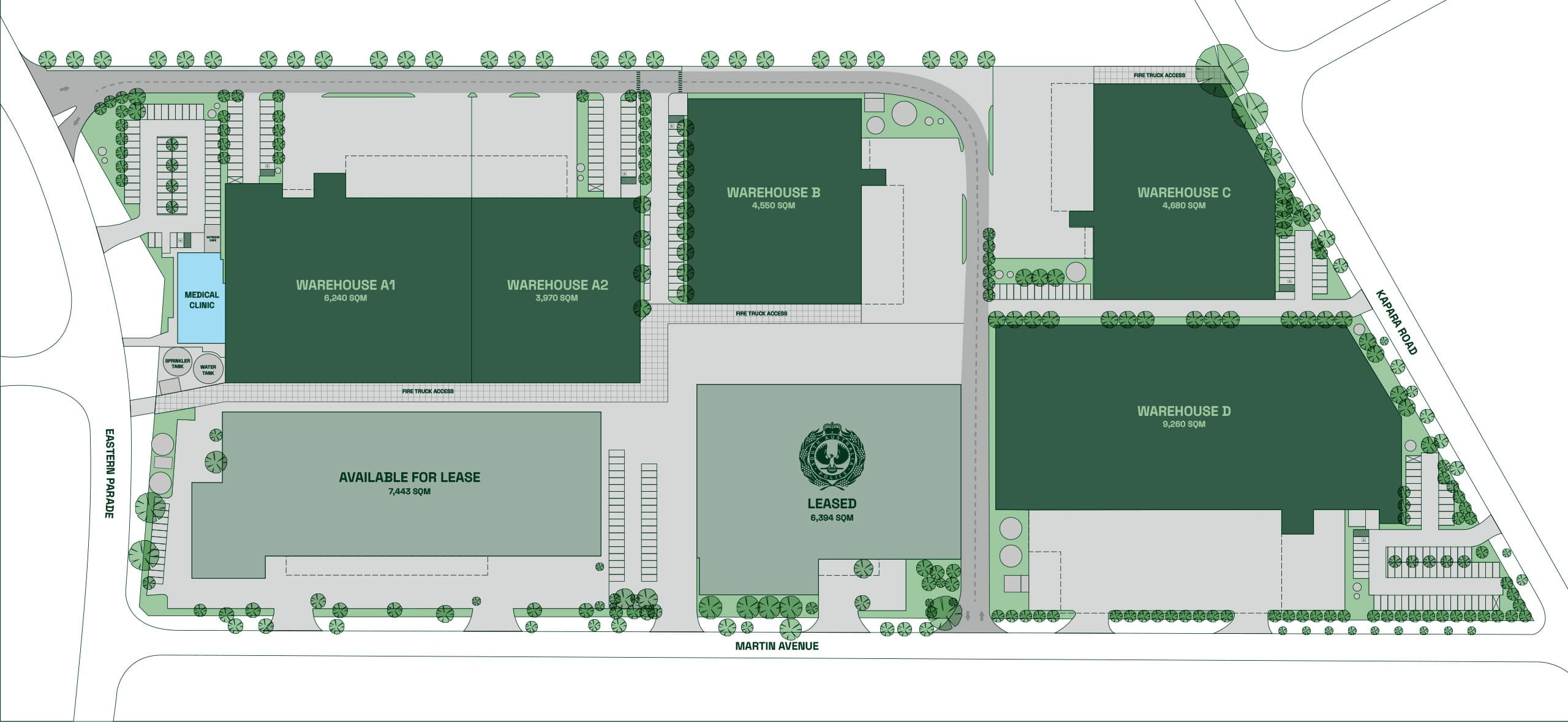 Gillman Industrial Estate strives for a 5-star Green Star rating, minimising impact, enhancing energy efficiency, promoting sustainability, and creating a healthier work environment, aligned with the Green Building Council of Australia (GBCA) framework.